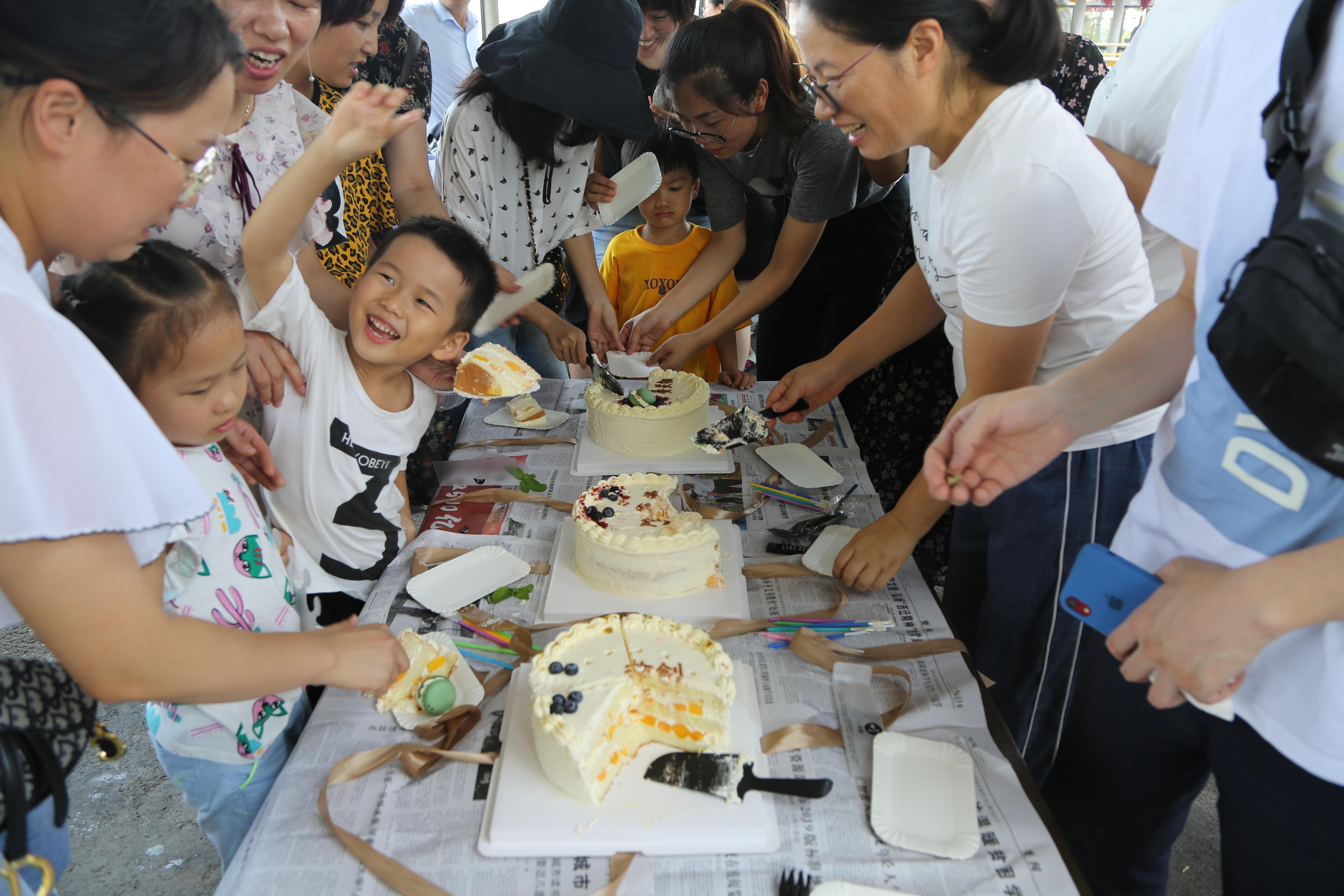 ? ? 吃飽喝足之余,小朋友們四處亂竄,興奮不已,大人們吹著涼風坐著聊天游戲,額外的驚喜也隨之開啟。九月份,集團本部共有7位同事生日,總裁辦借由此次活動,為他們準備了三個蛋糕舉辦了一場特殊的室外生日會,在場的同事為他們共唱生日歌,送上集體的美好祝福。