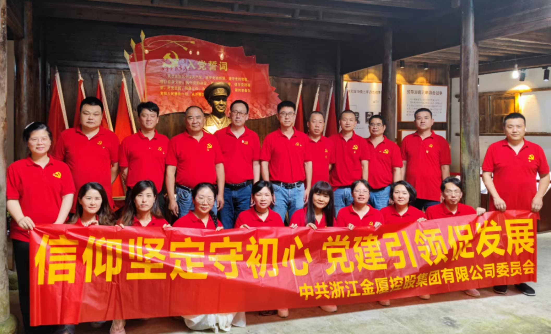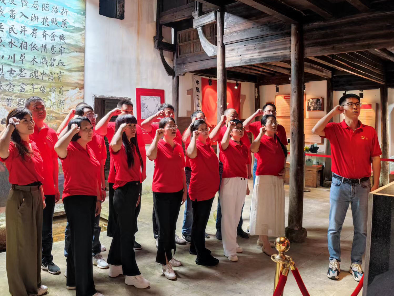? ? 金廈黨總支的黨員們在黨支部書記傅融的帶領(lǐng)下參觀了銀坑村粟裕將軍紀(jì)念館,感悟革命初心,重溫入黨誓詞。