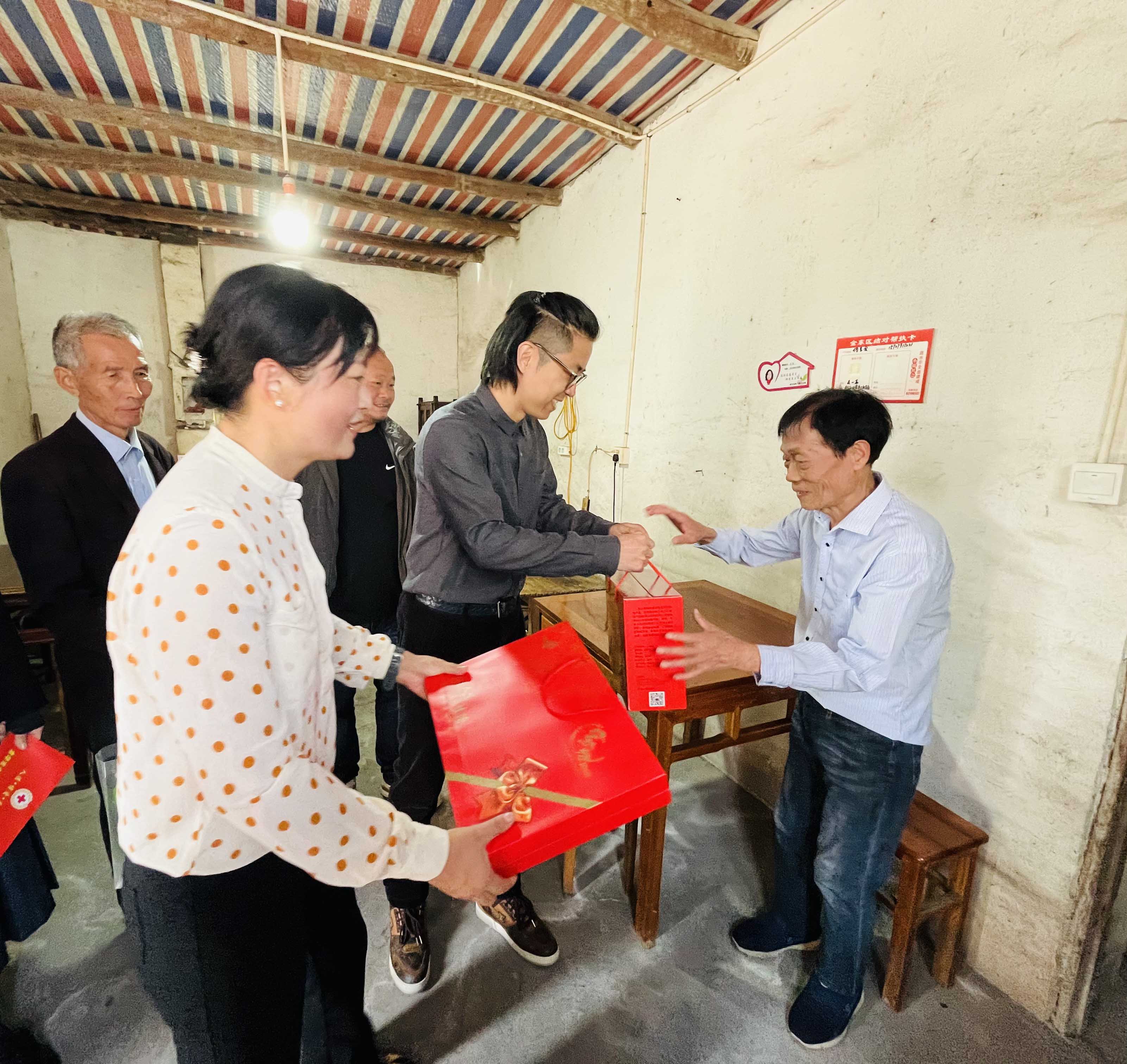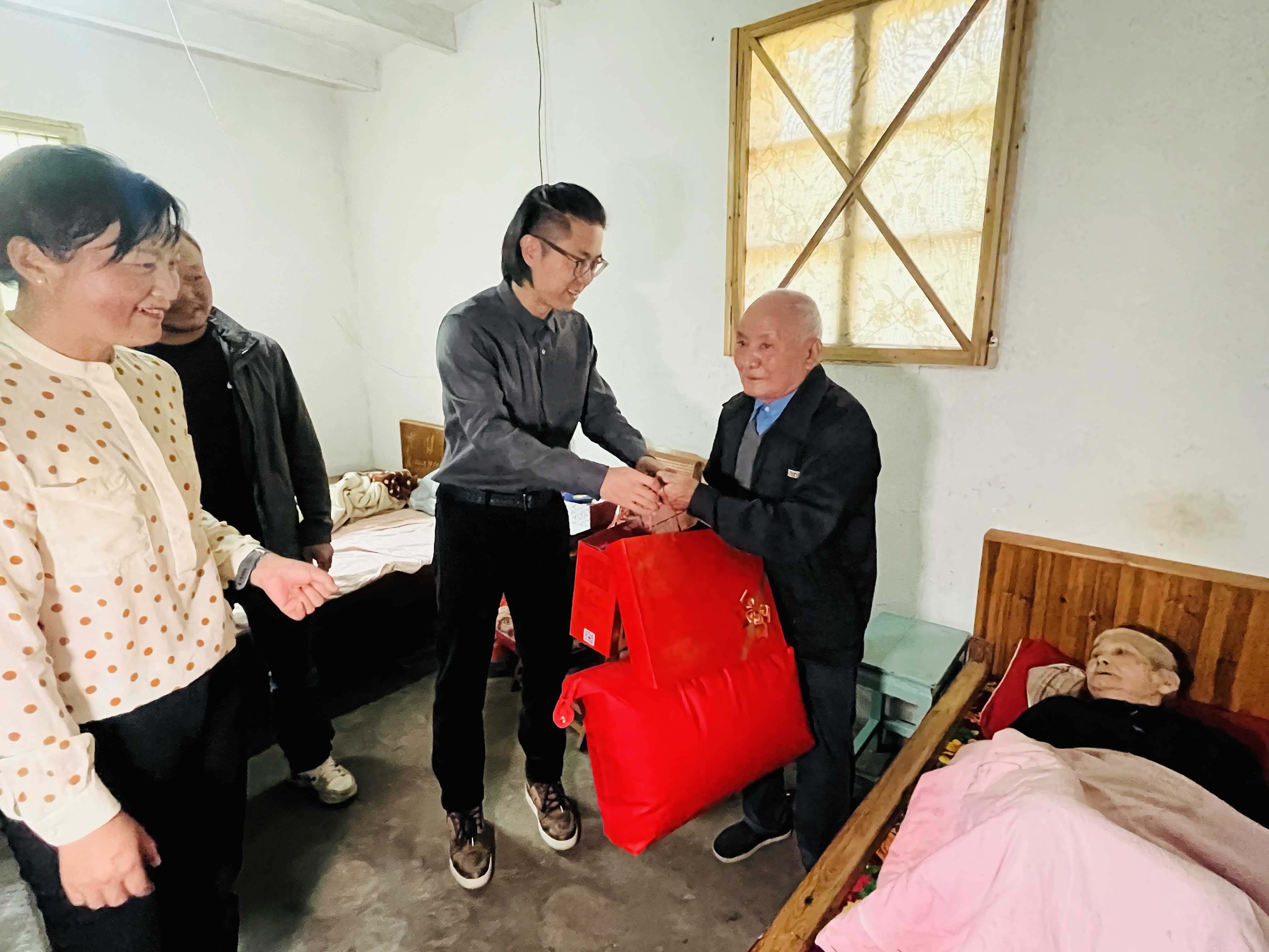 “重陽節(jié)快樂,祝你們健康長(zhǎng)壽!”在村領(lǐng)導(dǎo)的陪同下,蔣晨虹董事長(zhǎng)、傅融總裁一行走訪了村里的困難家庭,為他們送上慰問金及食物、被子、洗浴用品等生活物資,并與他們親切交談,關(guān)心詢問他們的身體狀況和生活情況。這不僅讓困難家庭感受到了社會(huì)的溫暖和關(guān)懷,也進(jìn)一步體現(xiàn)了金廈對(duì)弱勢(shì)群體的關(guān)注和支持。