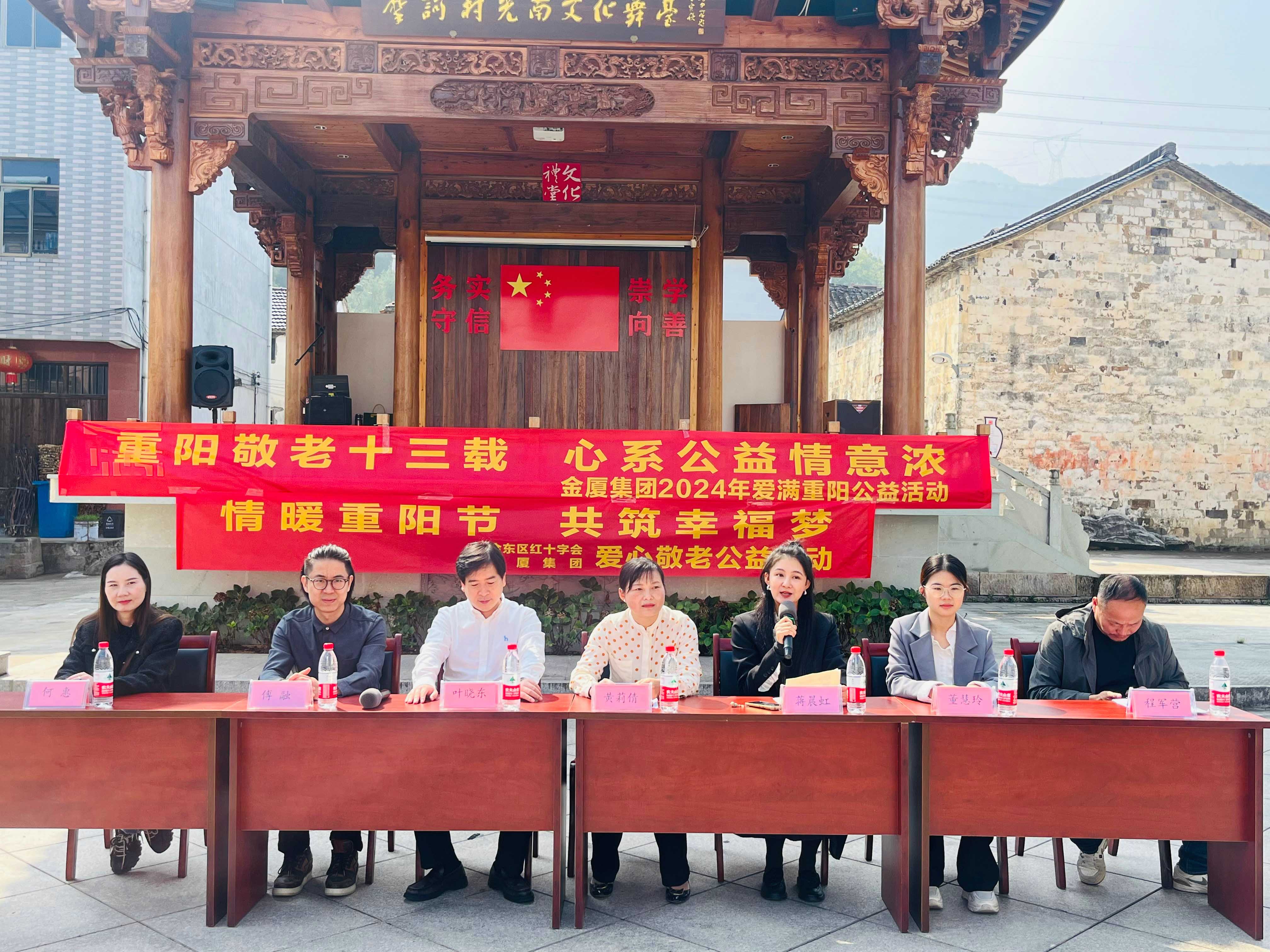在2024年重陽節(jié)即將來臨之際,為進(jìn)一步弘揚(yáng)中華民族尊老敬老的傳統(tǒng)美德,展現(xiàn)企業(yè)的社會(huì)責(zé)任感, 10月10日上午,金華市政協(xié)委員、金廈集團(tuán)董事長(zhǎng)蔣晨虹率集團(tuán)高管及各條線負(fù)責(zé)人一行再次前往金東區(qū)嶺下鎮(zhèn)摩訶村,開展“情暖重陽節(jié),共筑幸福夢(mèng)”重陽慰問活動(dòng),為村里老年人和困難家庭送上慰問金、慰問品,并通過豐富多彩的活動(dòng)為大家送上節(jié)日的美好祝福。這也是金廈集團(tuán)連續(xù)第13年開展重陽節(jié)助老公益活動(dòng)。